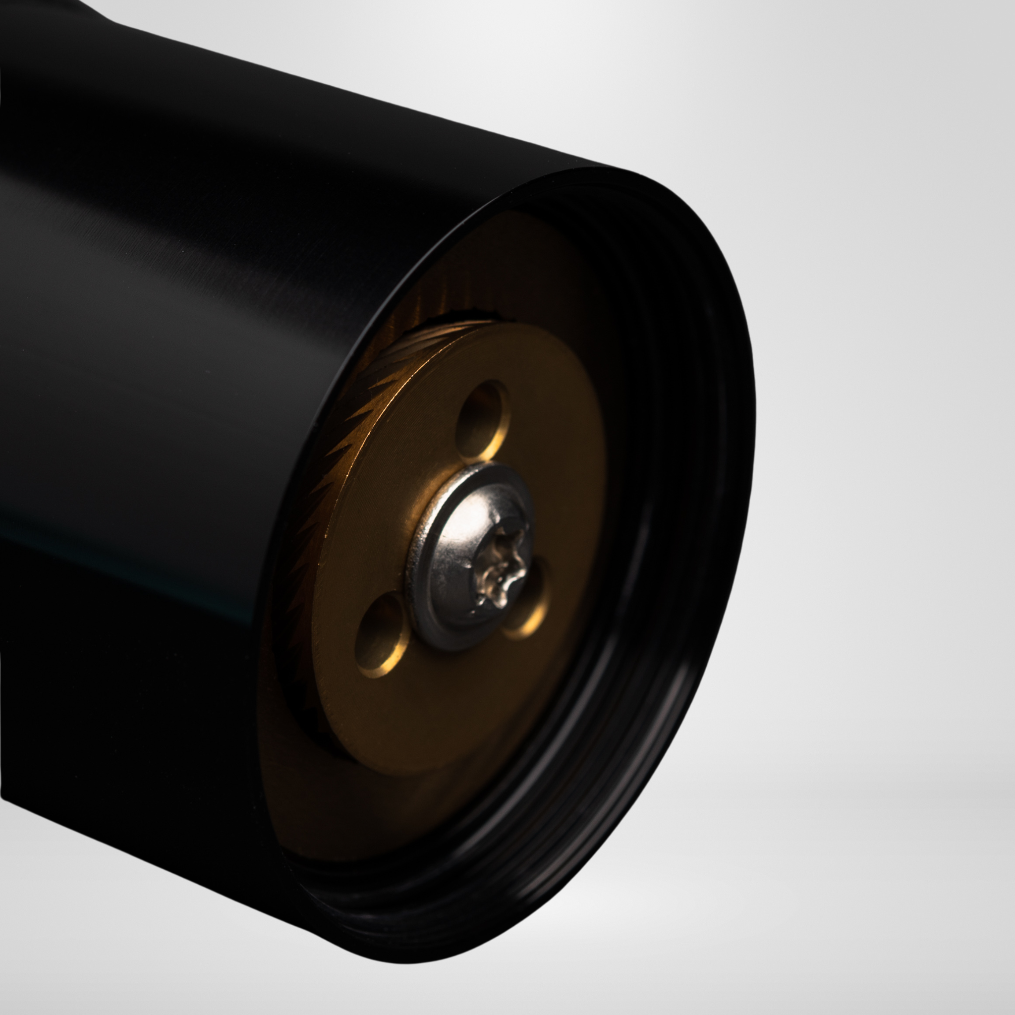 Every component of the Feld47 is engineered for precision. The body is machined from a single block of aerospace-grade aluminum, the body ensures perfect alignment and zero burr movement. At its center is a centreless-ground marine-grade steel shaft, supported by two custom-made, sealed food-grade bearings, creating a completely stable, play-free grinding mechanism. Combined with the rigid fixed-rod crank arm, the Feld47 offers a remarkably smooth and efficient grinding action-even at fine settings.